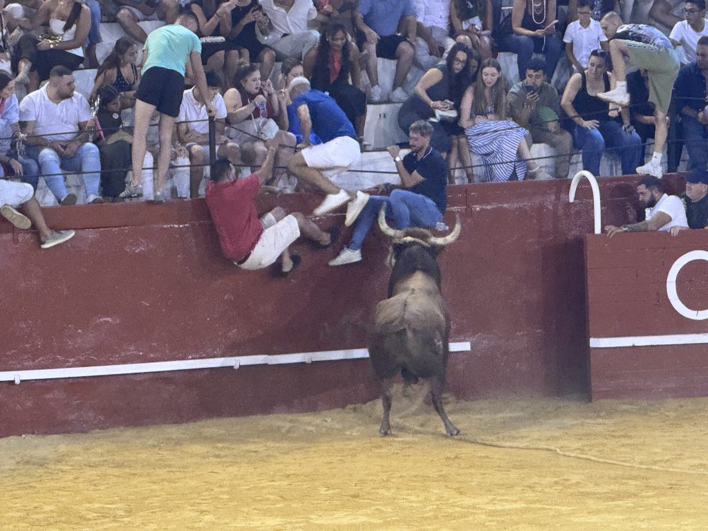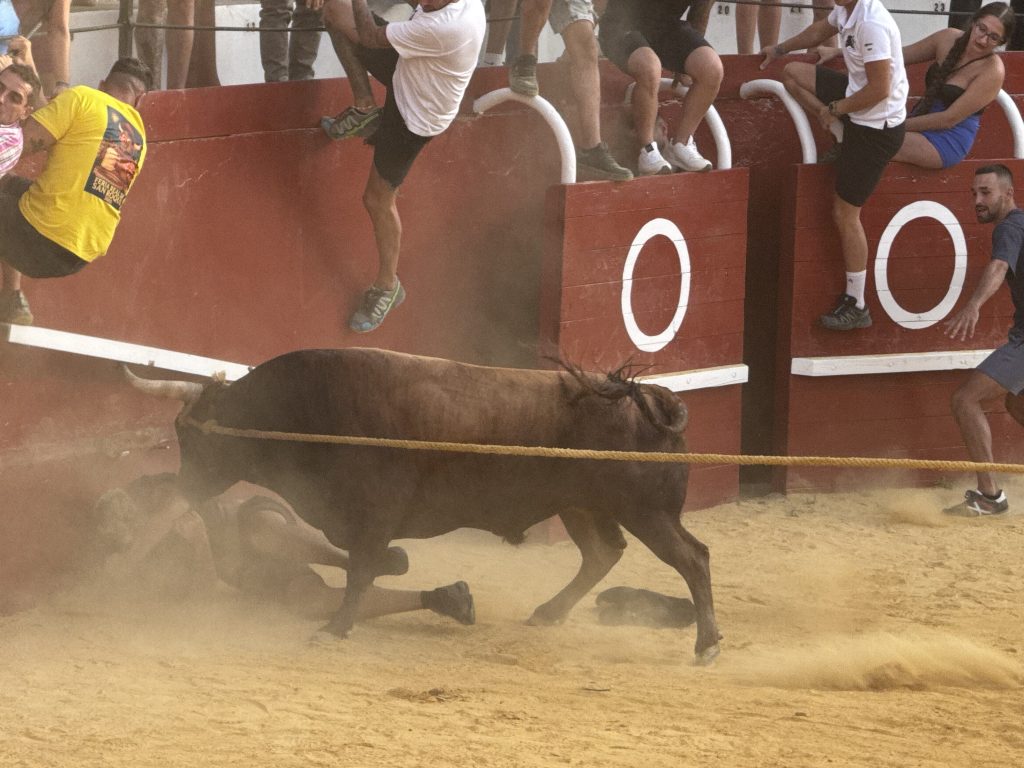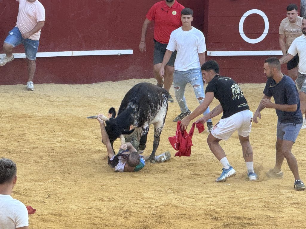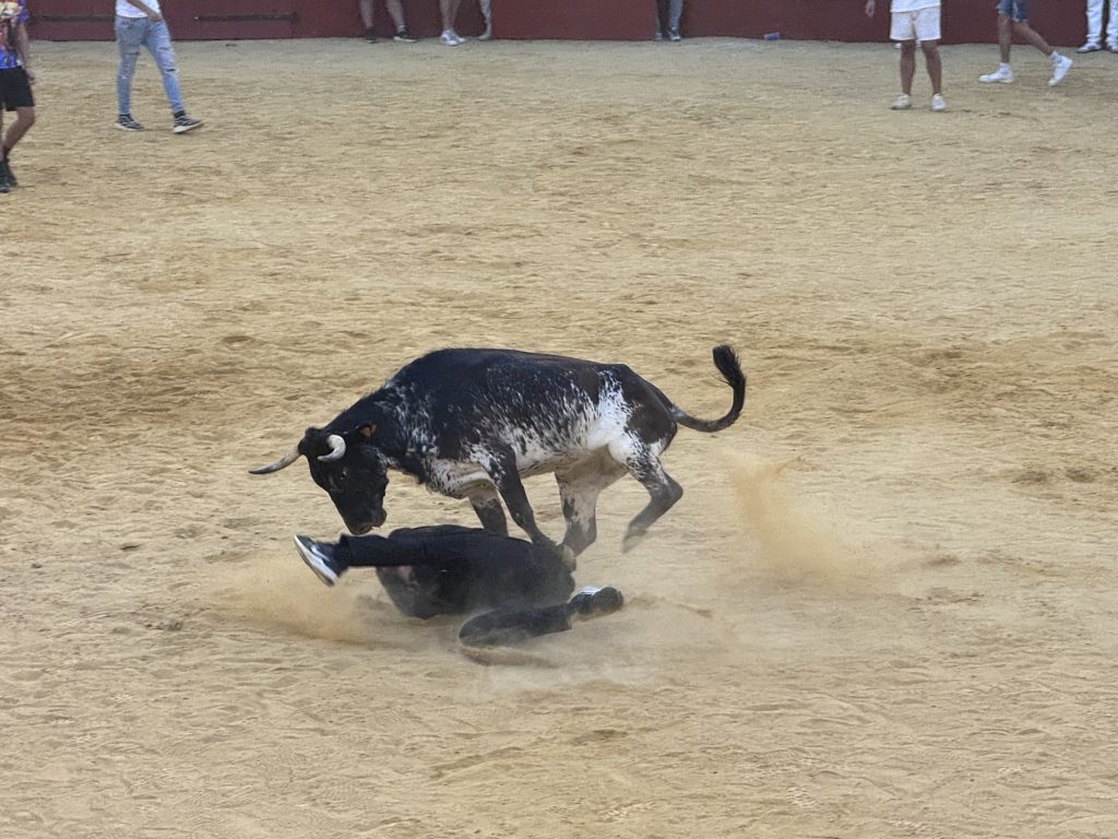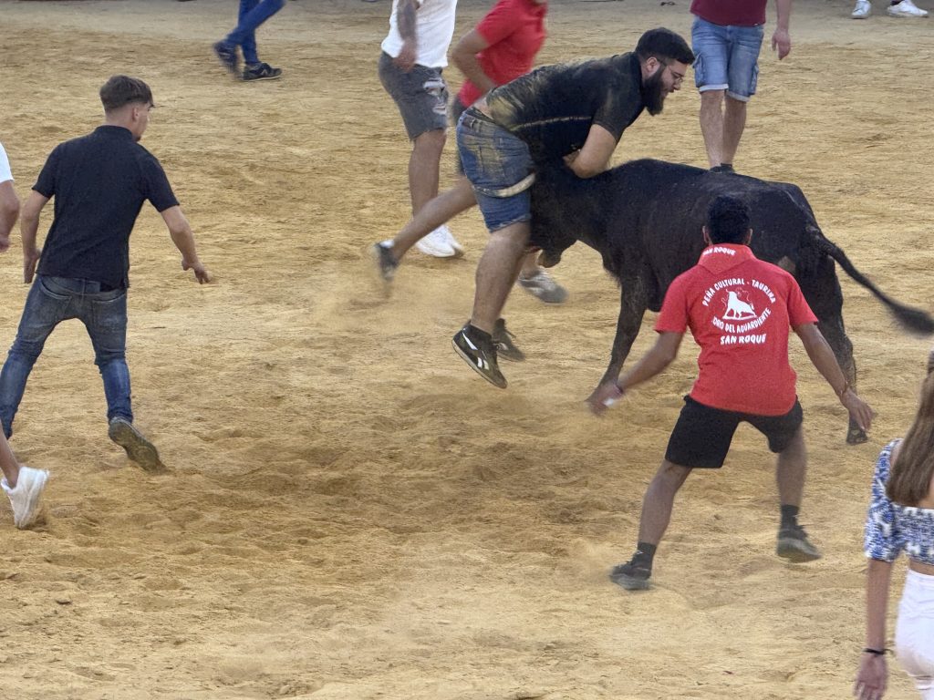 Un año más, la Feria Real de San Roque pone su punto y final con un lleno absoluto de la plaza de toros para disfrutar del Toro del Aguardiente. Hubo revolcones causados tanto por el toro como por las vaquillas, e incluso alguna voltereta.