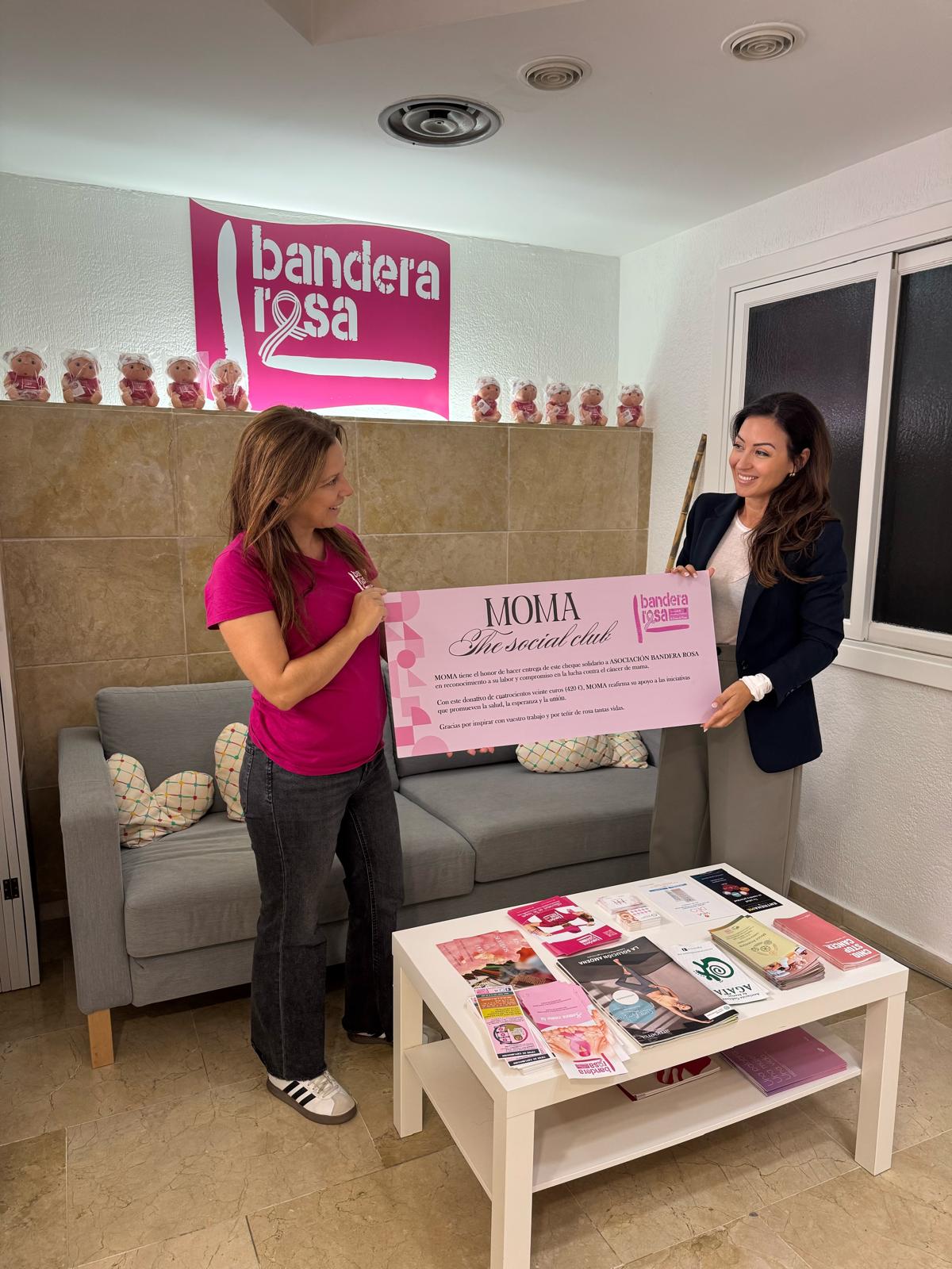 El evento tuvo también un importante impacto solidario. MOMA logró recaudar 420 euros en donaciones directas, a los que se sumaron 45 euros procedentes de la venta de merchandising. La cantidad íntegra, 465 euros, fue entregada a la Asociación Bandera Rosa, entidad local que trabaja en el apoyo psicológico, social y sanitario a mujeres diagnosticadas con cáncer de mama. La entrega del cheque fue realizada por la fundadora de MOMA, Raquel Gómez, en nombre del club y de todas las participantes.